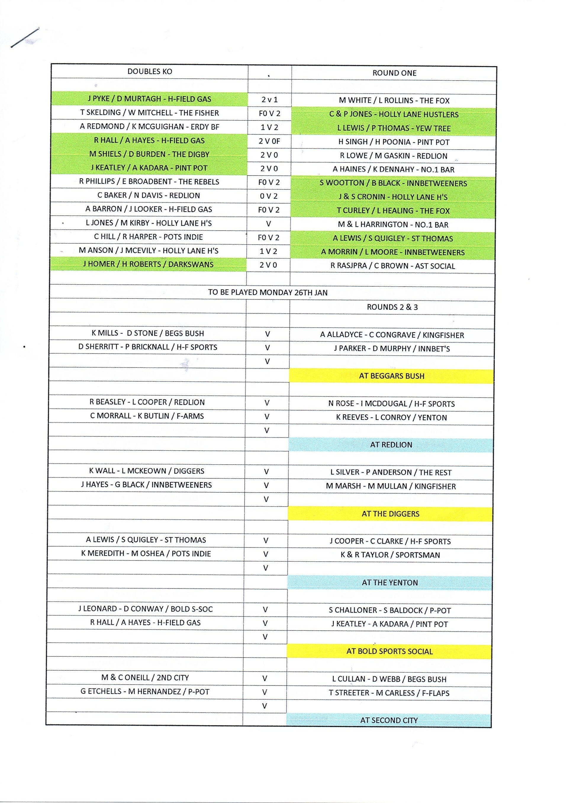 CAPTAINS KO CHAMP - KEVIN DENNAHY / NO.1 BAR RUN UP - AMJID PAREEZ / FOLEY ARMS
